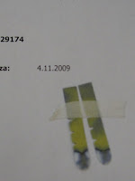 Teniendo en cuenta todos los hallazgos hasta el momento, se decidió llevar a cabo un test cuyo resultado puede ver en la imagen. El oftalmólogo indica en los resultados del test que la tira no se ha humedecido nada (0,00 mm) en cinco minutos, lo que indica un cuadro claramente patológico y por tanto se recomienda el estudio en profundidad del caso, incluyendo biopsia de glándulas salivares.